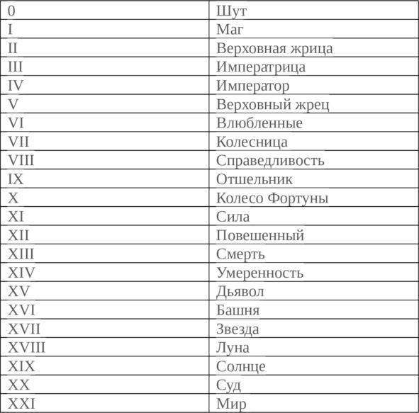 (↕0 Шут — ↕VIII Справедливость) нотация