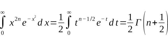 То есть значения чётных моментных интегралов Гаусса прямо выражаются через гамма-функцию для полуцелых аргументов [1] [2].