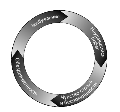 Рис. 2.1а показывает порочный круг, в котором страх и неподвижность подпитывают друг друга. Это то, что засасывает нас в «черную дыру» травмы и удерживает там.