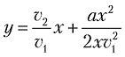 где v2 — начальная скорость мяча по оси y (по вертикали); a — постоянное ускорение свободного падения под воздействием силы тяжести (в метрической системе равно приблизительно –9,81). Подставив первое уравнение во второе, мы находим, что высота брошенного мяча (y) связана с горизонтальной позицией мяча (x) следующей зависимостью:
