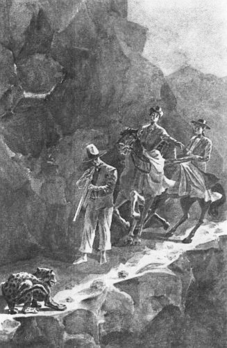 “I admit that. No braver man than Micky McGuigan ever lived. He had the traditional Irishman’s love of a fight and he got plenty of it. But, Tom, our perils began, as you know, before we touched foot in California. Off the southern coast our steamer, the Western Star, was sunk in a collision. Teddy and I were left on the uninhabited coast (so far as white people are concerned), without so much as even a gun or pistol. Finding ourselves marooned, we struck into the interior, stole a couple of guns and some ammunition (what’s the use of denying it at this late day?) from some Indians, and then went it blindly.”
