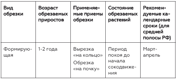 Рекомендуемые календарные сроки обрезки для средней полосы РФ: