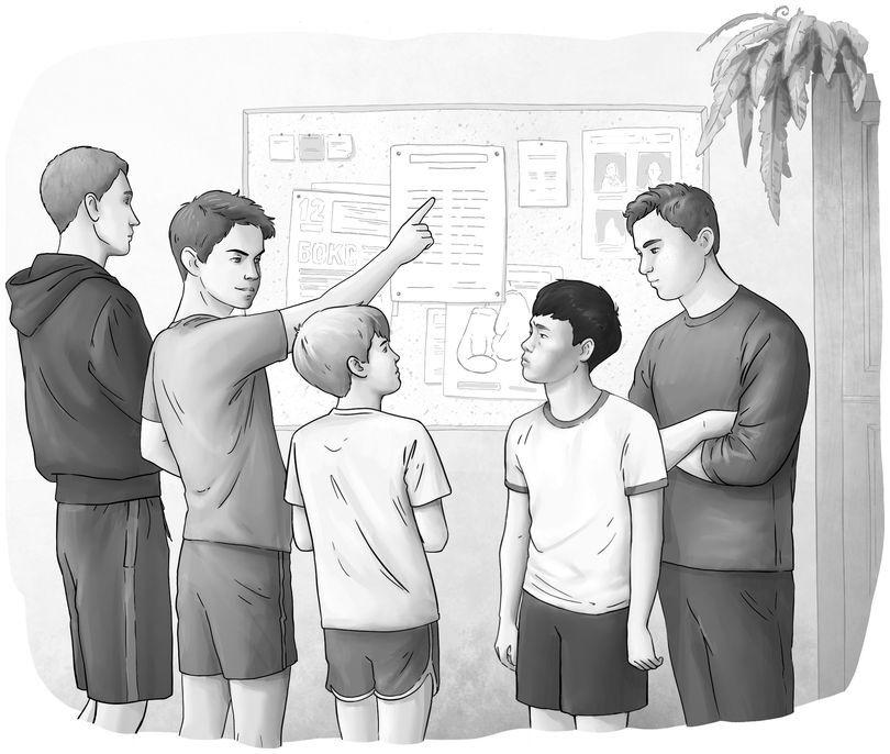 Дима стоял перед доской, на которой были вывешены списки, кому с кем предстоит биться завтра. Вдруг из-за его плеча к доске протянулась рука и чей-то палец ткнул в его фамилию: