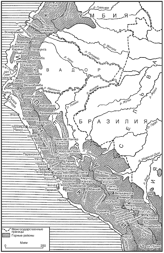 К северу от этой территории, весьма известной в древней истории Южной Америки, расположен еще один, не менее знаменитый район – Куско, сердце империи инков. Здесь расстояние между двумя горными цепями составляет всего 200 миль, а хребет Вильканьота представляет их южную границу. Протянувшись к северу, этот коридор имеет ширину 150 миль, а череда гор и хребтов простирается до границ Республики Эквадор.