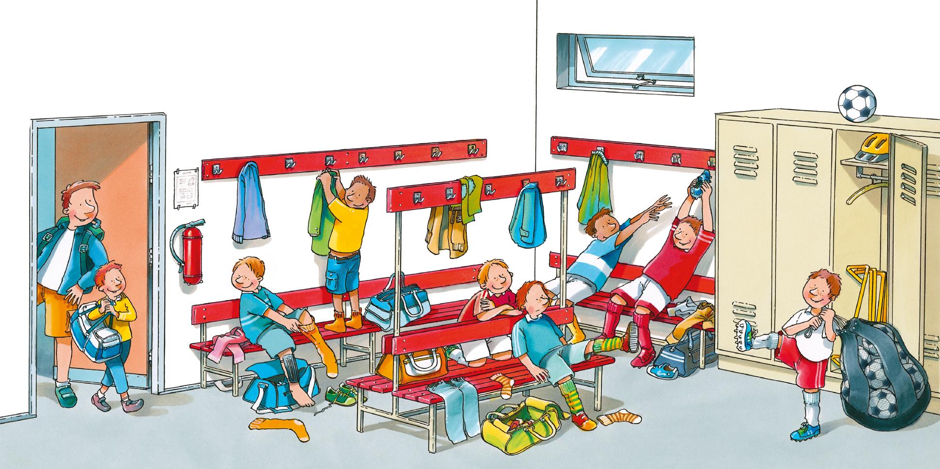 В раздевалке уже переодеваются мои товарищи по команде.