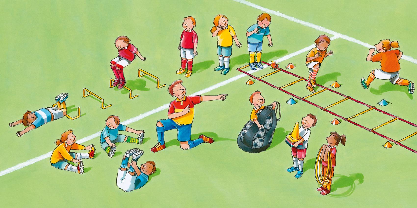 Мы всегда начинаем тренировку с разминки. Разминаться очень важно, чтобы не получить травму и не потянуть мышцу. Норберт говорит нам, что делать, ведь он прекрасно в этом разбирается: когда-то он играл в профессиональной футбольной лиге.