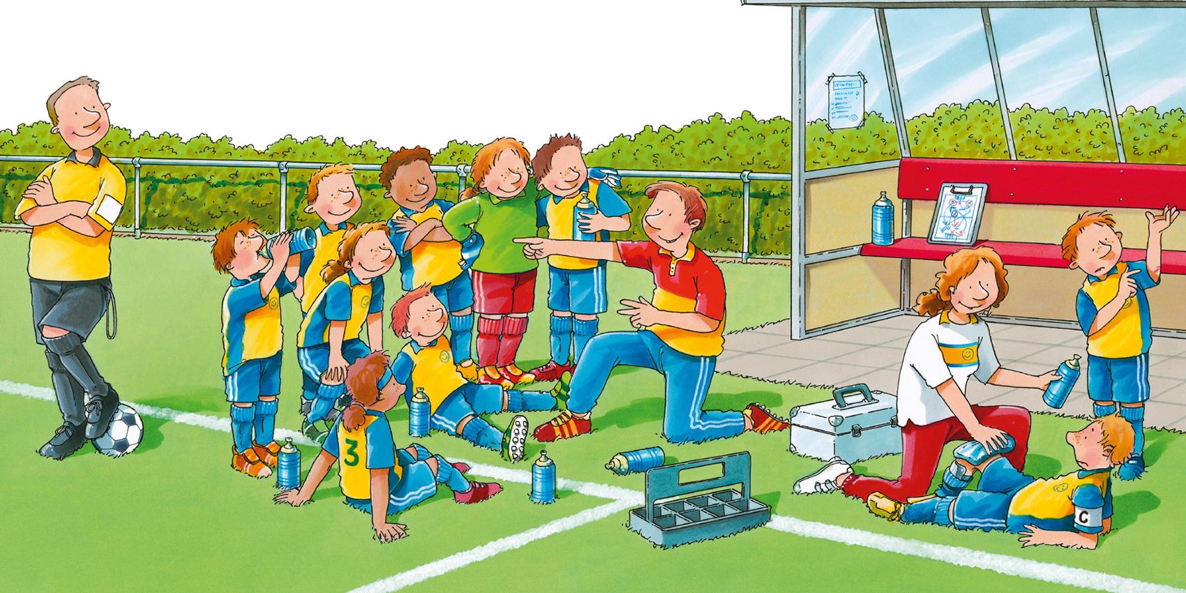 Подходит время перерыва. Норберт объясняет нам, что можно сделать, чтобы улучшить игру. Сабина заботится о тех, кому нужна помощь. Прямо сейчас она прикладывает лёд к коленке Франко, который получил удар по ноге. Но всё не так уж и плохо. К тому же настоящие футболисты сделаны не из фарфора.