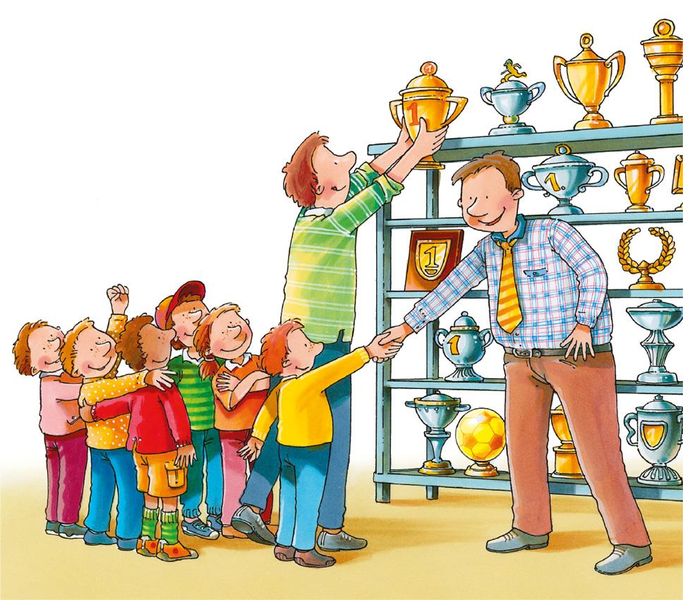 На следующий день после матча мы снова собираемся в здании футбольного клуба. Кубок занимает своё место на стеллаже для трофеев, а председатель клуба благодарит каждого из нас за вклад в победу. И Норберта — за блестящую работу, ведь без нашего тренера мы бы точно не выиграли кубок. По заслугам и честь, как говорится.