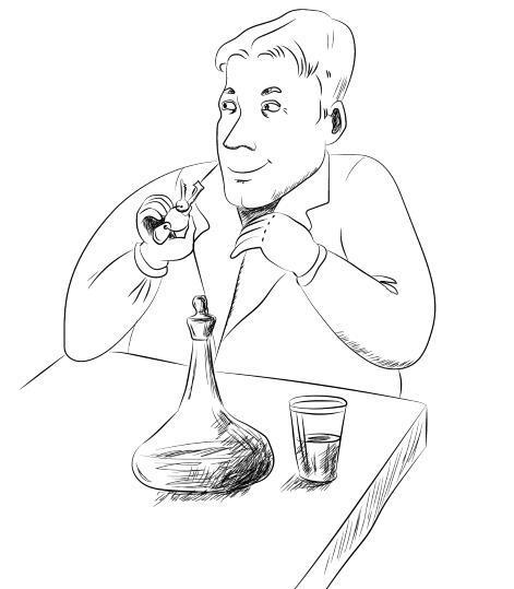 Он слышал или читал, что вино должно улучшать здоровье. Поэтому решает каждый вечер выпивать бокал вина, чтобы здоровье было крепче.