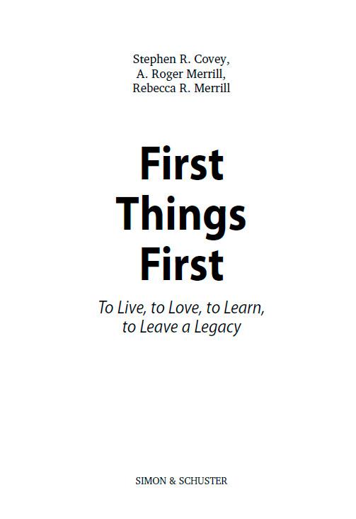 Работая в Covey Leadership Center, мы общаемся со многими людьми по всему миру. Это активные, трудолюбивые, компетентные люди, которые преданы своему делу и стремятся сделать наш мир лучше. Однако эти люди постоянно говорят нам о тех невероятных трудностях, с которыми они сталкиваются в повседневной жизни, стараясь уделять главное внимание действительно важным вещам. И то, что вы обратили внимание на эту книгу, говорит о том, что вы, наверное, разделяете их чувства.