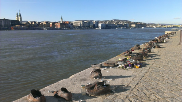 Продолжая свою прогулку вдоль набережной, я добралась до места (это около здания Парламента), где расположилась обувь прямо у реки. «Туфли на набережной Дуная» — так называется мемориал в память о жертвах Холокоста. Холокост — это преследование и уничтожение нацистами представителей этнических и социальных групп в период существования нацисткой Германии.