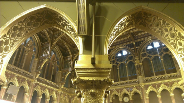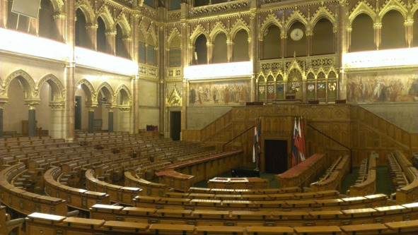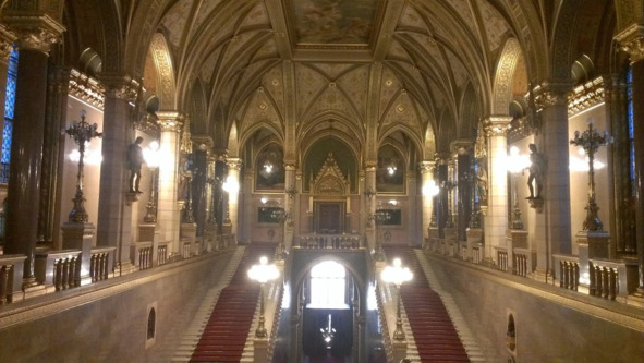 В купольном здании парламента (там фотографировать запрещено), украшенном 16 статуями королей и правителей Венгрии, с 1 января 2000 года (1100-летие государственности Венгрии) хранится корона святого Стефана вместе со скипетром, державой и мечом. Первые 20 минут каждого часа у регалий стоит почетный караул в исторической униформе. Остальную часть часа караул ходит вокруг регалий, охраняя их неприкосновенность.