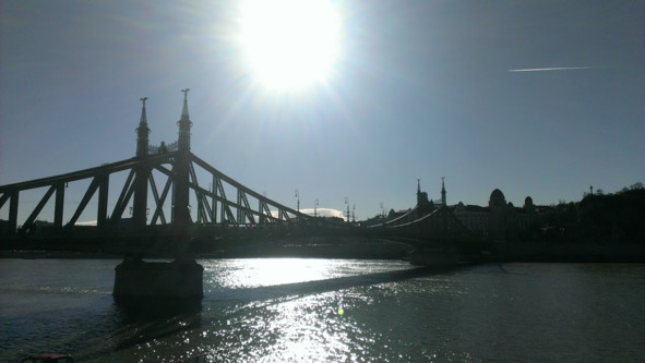 Утром солнце осветило город. И я бодро отправилась к реке. Дунай активно перемещал свои воды вдоль города. Солнечные лучи смотрели на реку сверху и посылали свои блестящие потоки в пространство. Очень красиво было! Празднично! Светло!