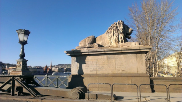 Это первый мост, который построили в столице Венгрии. И главный. У входа на мост на каменных постаментах важно восседают два больших льва.