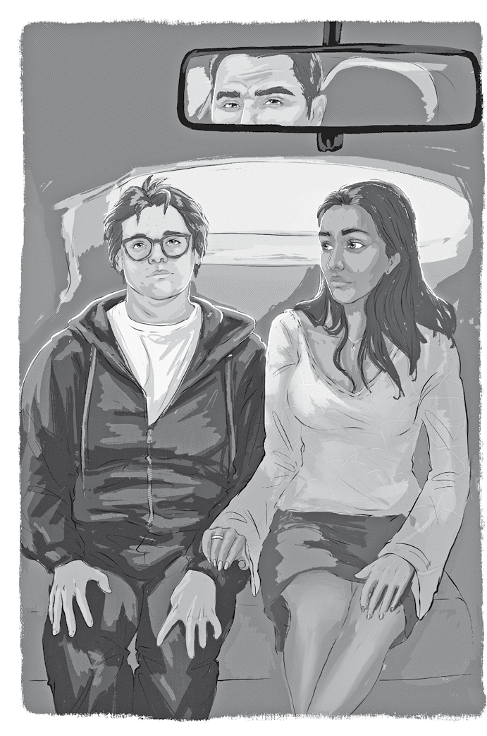 Я было вздохнул, но спохватился, сообразив, чем рискую. Однако все идет хорошо: отец и мать перебрасываются убийственными взглядами через зеркало заднего вида. Он — на водительском сиденье: волосы темные, редкие, глаза карие и кожа цвета белого песка. Она — на заднем сиденье, рядом со мной: косы ниже пояса, фиалковые глаза и кожа цвета темной яшмы.