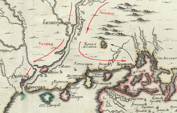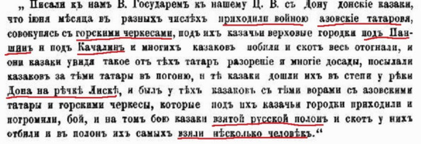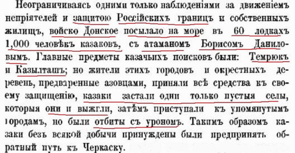 Другие сведения о действиях Донских Казаков в этом году на Азовском море нахожу у русского историка Василия Дмитриевича Сухорукова в книге «Историческое описание земли Войска Донского» изданного в Новочеркасске в 1872году. Цитата из этой книги размещена выше.