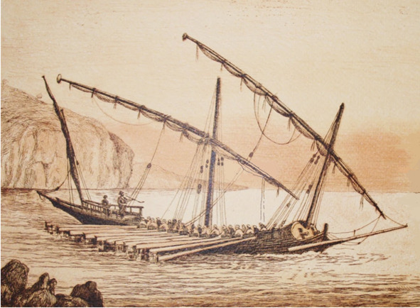 Открытая точная стрельба с башен способствовала тому что большая часть неприятельской конницы была побита, а другая часть была потоплена в реке.