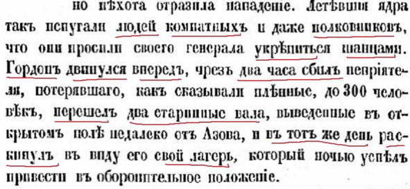 Приведённая ниже цитата из книги Николая Устрялова «История царствования Петра Великого» показывает действия Гордона (вставка):
