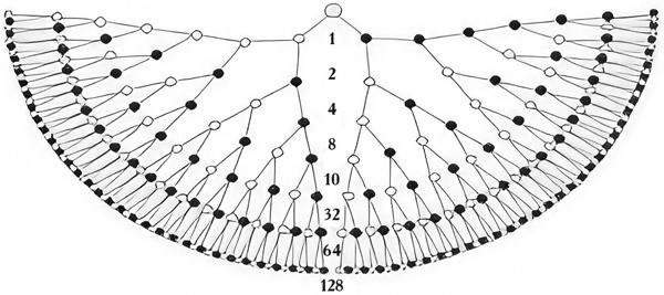 Если мы пойдем дальше, используя ту же аналогию, то, например, к двадцатому колену общая численность рода составит уже ни много ни мало 524 289 человек. Это достаточно просто считается и легко проверяется арифметически.