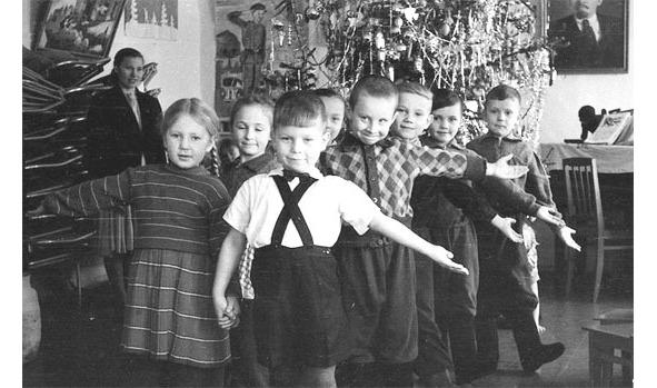 Мой детсад находился на углу ул. Советов и 50 лет ВЛКСМ. В большом зале проходили музыкальные занятия и праздники. Нашу воспитательницу звали Евдокия Гожая. Самая первая пара — я и Витя Александров. Его мама была заведующей детсадом, ее звали Анна Николаевна. Тогда я пришла в садик первый день после болезни и не знала, что будет утренник и что будут фотографировать.