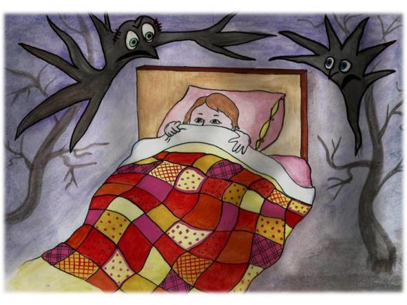 Ваня выглянул из-под одеяла. В комнате царил сумрак. На столике у кровати стоял стакан с молоком и кусок подсохшего пирога на тарелке. Бабушка Лиза переживала, что внучок Ванюша уснёт голодным. За окном деревенского дома скрипели и качались старые деревья, царапая стекла окошка своими кривыми лапами-ветвями. По стенам, освещенным молниями, бегали странные тени. Ваня опять нырнул под одеяло и забормотал: