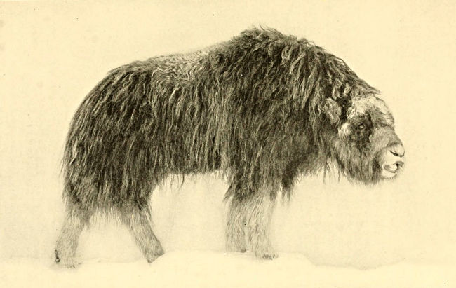 The Canadian government has protected musk-oxen for several years, and in order to hunt, one must be provided with a special permit from that government. The protection of the musk-ox seems scarcely necessary, for although the polar expeditions have slaughtered a great many on Greenland and on the Arctic islands, the killing of them in the Barren Grounds proper never has been, and never will be, sufficiently large to give concern to the Canadian government. The musk-ox is of a genus that seems to be a declining type among the world’s animals, but if extinction comes to those in the Barren Grounds, it certainly will never be through their killing by white men or Indians. If any great value attached to the hide, it might be another story; but the truth is that the musk-ox robe is not a valuable fur, is sought after, indeed, but very little. It is too coarse to wear, and the only use to which it seems admirably adapted is as a sleigh-robe.
