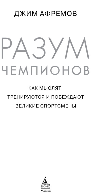 Разум чемпионов: Как мыслят, тренируются и побеждают великие спортсмены / Джим Афремов ; Предисловие Джима Крейга ; [пер. с англ. Я. Матросовой]. – М. : Азбука Бизнес, Азбука-Аттикус, 2017.