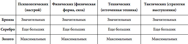 Чего вы хотите добиться — бронзы, серебра, золота? Каким бы ни был ваш текущий уровень, никогда не исключайте возможность стать чемпионом в своем виде спорта или в жизни. Вы можете лучше. Можете раскрыть свой потенциал полностью. Вам по плечу серьезно изменить жизнь, изменив свои представления о том, чего вы в состоянии достичь. Правильный подход выражается в принятии решений, а также в хорошо усвоенной модели поведения, постоянно требующей собранности и сил.
