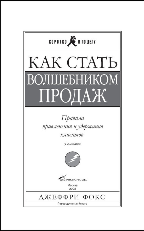 Как стать волшебником продаж: Правила привлечения и удержания клиентов / Джеффри Фокс; Пер. с англ. — 5-е изд. — М.: Альпина Бизнес Букс, 2008. (Серия «Коротко и по делу»)