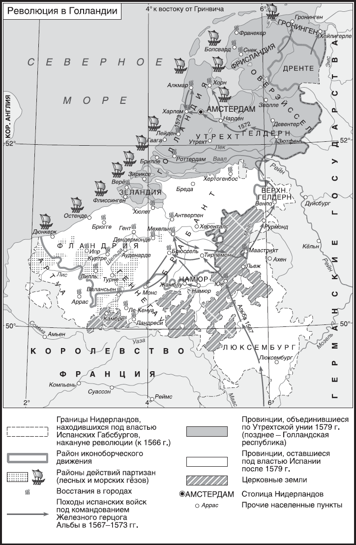 Историк А. Чистозвонов пишет, что в ходе иконоборческого восстания пострадало 5500 церквей и монастырей[27]. Ответным ударом имперской власти было направление в восставшие провинции Фернандо Альвареса де Толедо, Железного герцога Альбы. Этот выдающийся полководец навел порядок и принудил Нидерланды к повиновению. Тогда купцы-кальвинисты (или «гугеноты», как их называли во Франции) профинансировали военное сопротивление Альбе, которое возглавил изменник принц Вильгельм Оранский-Нассау. Принц был всем обязан императорской короне: хотя его вотчиной был небольшой городок Оранж в Провансе, он с 12 лет воспитывался при дворе Карла V. В 22 года он уже был командующим императорскими войсками во Франции. В 1568 году, будучи 35 лет от роду, он изменил присяге и поднял оружие против своего государя, а в 1572 году изменил уже Церкви, став кальвинистом. Вильгельм Оранский был плохим военачальником. Он часто с позором покидал поле боя, оставляя собственных солдат и забывая им заплатить. Однажды при побеге ему даже пришлось переодеться в женское платье.