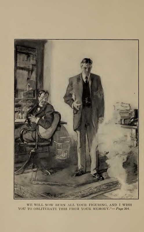 “After all, Manson, he is in your department, and you may do as you please. I should rather see him go, but I don’t insist upon it. Good afternoon, Mr. Manson.” The great man took his departure ponderously, leaving Manson somewhat nonplussed. As soon as the door to the corridor closed behind Blair, the door to Manson’s secretary’s room, which had been ajar during this conversation, flew open, and the impetuous Steele came rushing in.