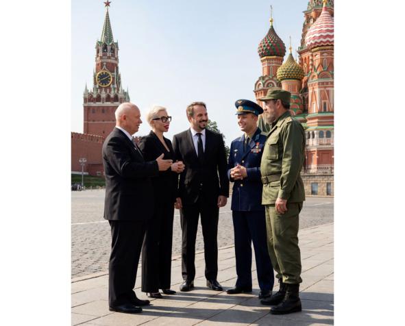 Их окружала свита — серьёзные мужчины в плащах и шляпах, офицеры КГБ с каменными лицами, репортёры с фотоаппаратами.