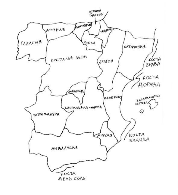 Комунидад. Набрали побольше воздуха и попробовали прочитать на одном вдохе — Andalucía (Андалусия), Aragón (Арагон), Principado de Asturias (Астурия), Islas Baleares (Балеарские острова), País Vasco (Страна Басков), Comunidad Valenciana (Валенсийское сообщество), Galicia (Галисия), Islas Canarias (Канарские острова), Cantabria (Кантабрия), Castilla-La-Mancha (Кастилия-Ла-Манча), Castilla y León (Кастилия-и-Леон), Cataluña (Каталония), Madrid (Мадрид), Región de Murcia (Мурсия), Navarra (Навара), La Rioja (Риоха), Extremadura (Эстремадура) (смотри рисунок 3). В скобках даны названия на русском языке этих сообществ, а не их транскрипция.