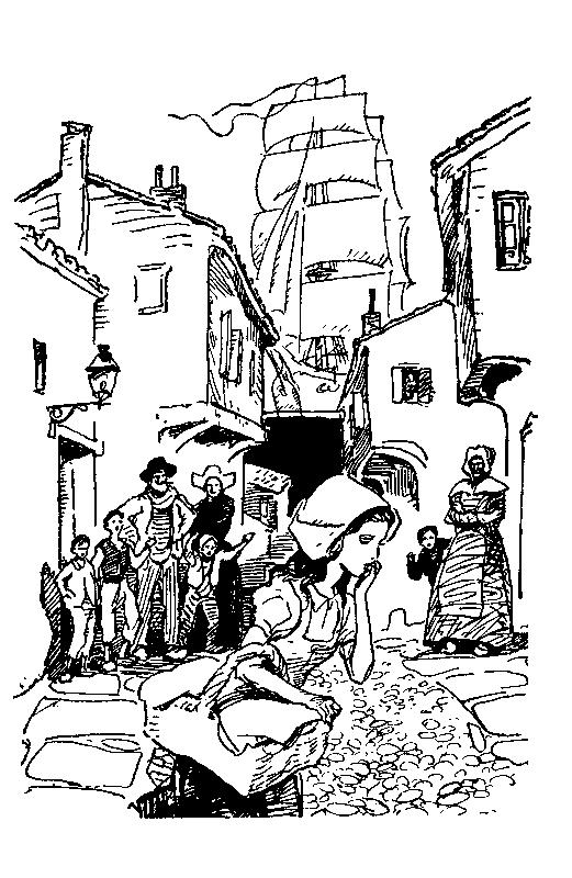 Девочка, вздрогнув, невольно взглянула из-под руки на разлив моря. Затем обернулась в сторону восклицаний; там, в двадцати шагах от нее, стояла кучка ребят; они гримасничали, высовывая языки. Вздохнув, девочка побежала домой.