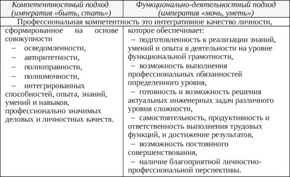 Определение понятия «профессиональная компетентность будущих инженеров» на основании компетентностного и функционально-деятельностного подходов