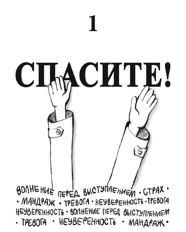 Первая была права лишь отчасти, вторая — полностью. Вы читаете строки, написанные человеком, рожденным с паническим страхом перед публичными выступлениями. Мое первое воспоминание детства связано не с возвращением папы из долгой командировки, когда он прижался ко мне спящему своей небритой щекой. Не с бабушкиными плюшками. И не с дедушкиной рыбалкой. Мое первое воспоминание детства связано с публичным выступлением. Мое первое воспоминание детства — это волнение, замешательство, дискомфорт. Представьте себя на моем месте. «Сыночка, вставай на табуреточку и расскажи тетям и дядям стишок, который мы вчера с тобой разучили», — говорит мама. Новый год. Друзья родителей расположились за столом и понимают, что оливье и селедку они получат только после исполнения номера художественной самодеятельности. Это обычная история. Гости подчеркнуто сосредоточенны и уже готовы зааплодировать. Мама предвкушает успех. Папа умилен заранее. Только я один невыносимо страдаю. От страха я забываю все, что вчера вечером с таким удовольствием выучил. Все четыре строчки. Не только из-за страха, но и из-за огорчения, что не оправдал ожиданий взрослых, я бегу в другую комнату и безутешно рыдаю. Ни подарки, ни сласти, ни ласки не могут вернуть меня к жизни. Жизнь кончилась. И кончилась позорно. Мои родители не помнят этого случая. Тогдашние наши гости не помнят меня. Но я все помню очень хорошо. Это детское переживание я пронес через всю свою жизнь. Еще не раз оно отзывалось смущением и сконфуженностью, когда нужно было выступить перед публикой. Еще не раз разноцветные пятна плыли перед глазами, тряслись колени и срывался голос, когда нужно было выйти на сцену. Еще не раз я прощался с жизнью после неудачного выступления. В пытку превращались школьные экзамены и олимпиады, торжественные вечера и концерты художественной самодеятельности.