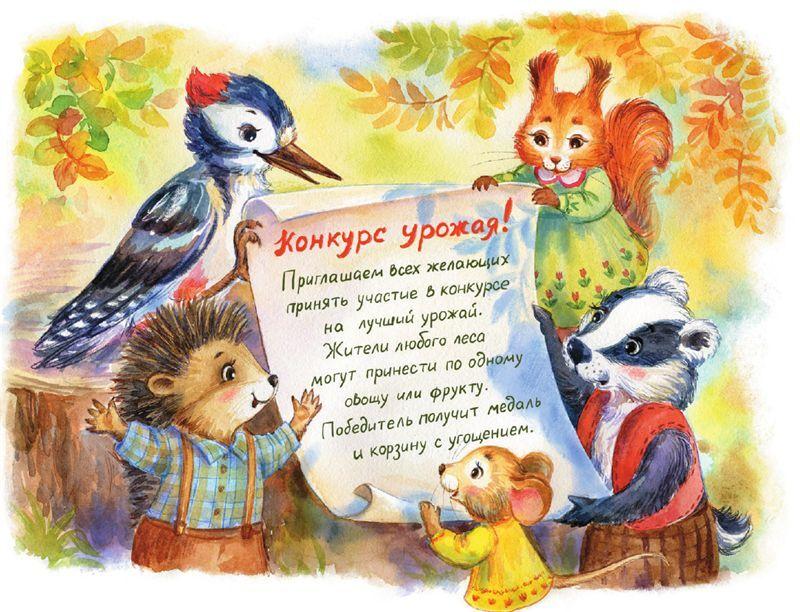 Дятел когтями взялся за свиток и протянул его барсуку. На листке бумаги яркими буквами было написано: