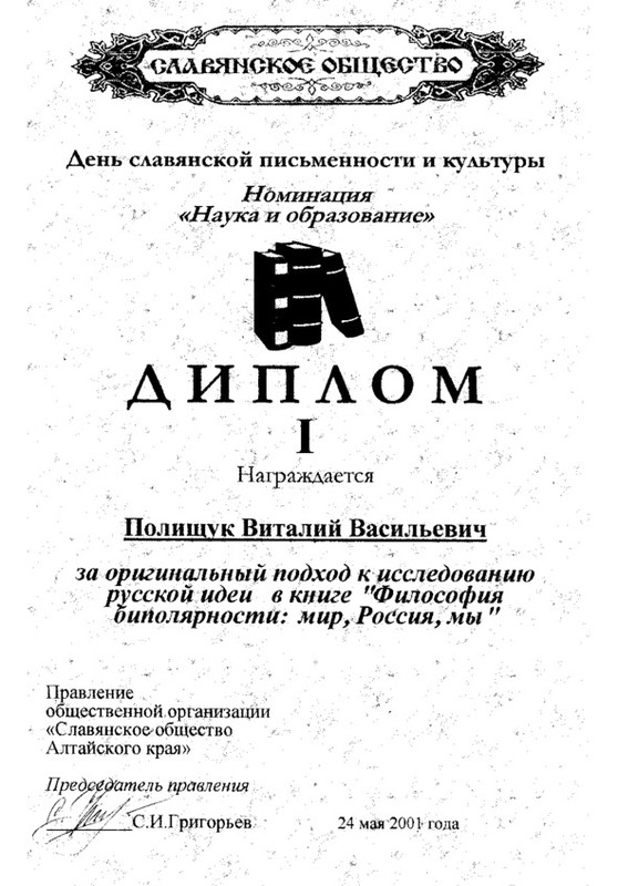 Эта книга по сути — своеобразное продолжение предыдущей книги (здесь и далее при упоминании или ссылки на ранее опубликованное имеется в виду книга: В. Полищук — ФИЛОСОФИЯ БИПОЛЯРНОСТИ: МИР, РОССИЯ, МЫ). Книга была разослана депутатам Государственной Думы, в адрес некоторых передач Центрального телевидения, а также политическим деятелям Российского государства и Алтайского края, передана в дар библиотекам и, наконец, некоторое количество экземпляров ее попали в частные руки. Как мы и ожидали, книга оказалась невостребованной — не вызвала какого-либо резонанса. Зато четыре отзыва-мнения, полученные от частных лиц, оказались своеобразным мнением четырех основных срезов нашего общества.