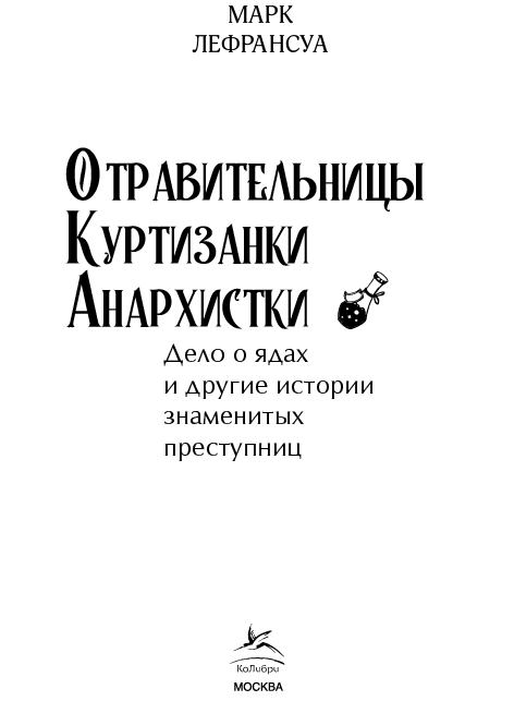 Отравительницы, куртизанки, анархистки: Дело о ядах и другие истории знаменитых преступниц / Марк Лефрансуа ; [пер. с фр. Л. О. Никитиной]. — М. : КоЛибри, Азбука-Аттикус, 2025.