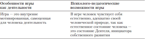 Итак, соотнесем особенности игры как деятельности и ее психоло-го-педагогические возможности.