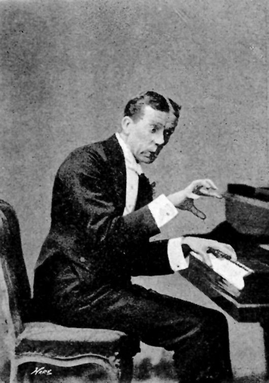 "Why, yes," he replied. "They wouldn't stand to-day what they used to roar at then. My music is quite elaborate compared with the two or three chords which easily satisfied people in the sixties and early seventies. Listen to this," continued my host, as he sat down to the piano and struck a couple of very simple chords. Then he glided softly into what he termed a modern accompaniment. It was all the difference between "Ten Little Niggers" and a slumber song of Schubert.