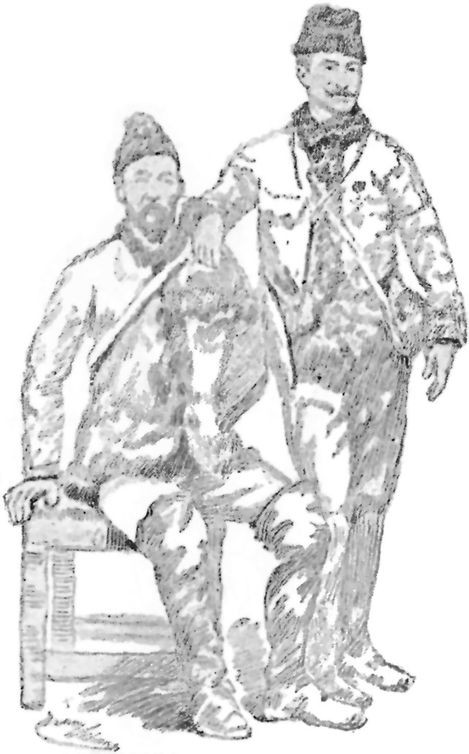Sometimes I found him playing his fiddle to keep himself company, but he stopped when he heard me, and, to tell the truth, I was glad of it, for his playing was uncanny. Sometimes I met him shambling along the brink of the Cliffs—a grotesque little figure, with his old shapeless hat, his huge coat flapping behind him, and the mighty blackthorn he carried—he knew the ground so well that he walked as if he could see (indeed, he saw more than I could, for while to me the breakers were only streaks of light, he spoke as if he was close to them on the wet weedy rocks), or I came on him lying by the edge, listening to the grumbling of the breakers and the cries of the gulls.