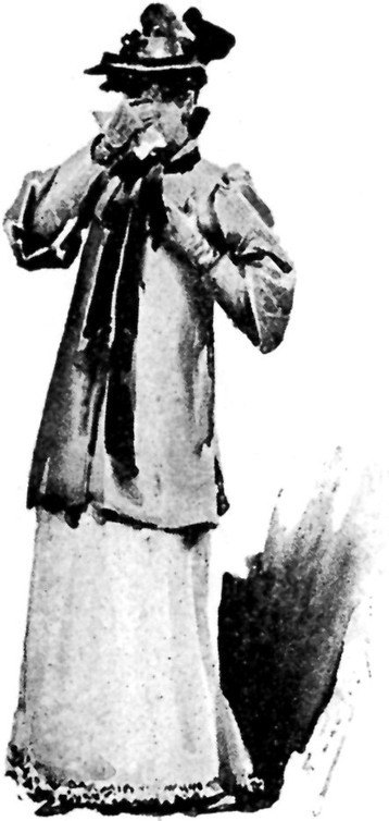 "I have had some curious experiences on tour," he went on. "That is hard work, if you like. I have gone a four months' tour without missing a night. It takes it out of one terribly. But it is very paying work. In the South of England I have made as much as £300 a week. My friends tried to frighten me as to the apathy of my Scotch audiences; as a matter of fact, I have no better audiences anywhere. I like performing to country audiences. I am never nervous as I am apt to be at St. James's, where there are a number of my friends. And it is on my country tours that I have many curious experiences. Amateurs invariably call at the hotel to see me, and to ask my advice as to their powers of recitation. Some are quite hopeless, and I haven't the heart to condemn them utterly, or to go beyond 'I tell you quite candidly, since you ask me, that I have heard better.' As a rule they are very quiet and modest, but now and again one encounters some fearful specimens. I remember once at a country town, which we will call Mudborough, a flashy young cad, in a very loud suit, called to see me with a parcel under his arm. He had come, he told me, to learn my opinion of his singing. He further informed me that he was known as 'the Mudborough Grossmith.' He didn't have the courtesy to take off his hat; he walked up and down my room, whistling, singing, and handing me over now and again specimens of his powers as a water-colour painter. I looked at them. At last, tired of the idiot and his airs, I said, 'I hope your musical sketches are better than you water-colour sketches.' Nothing, however, could snub this fellow. He proceeded straightway to sing me an improved version of 'See me Dance the Polka.' 'Do your audience like it?' I asked. 'I should think they did,' he replied; 'I will let you have that last verse if you like.' I thanked him sarcastically, and at last he withdrew. I have, however, come across some real talent in this way. For instance, that admirable actor and entertainer, Eric Lewis, is a protégé of mine, and you could not have a better man than he. Another amusing incident occurred at Southsea. My secretary was in a shop one day, and he overheard three ladies discussing the respective merits of Corney Grain and myself. Two of them were for Corney Grain and one was for me. Finding at last that the odds were too strong for her, she departed with this final shot: 'Well, never mind, Mr. Corney Grain can't jump on to a piano,' referring to my imitation of Minnie Palmer."