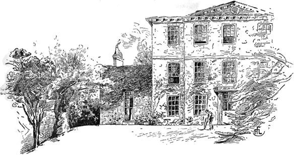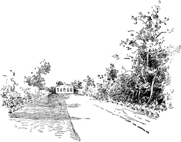 Many times after that I went out of my way on my long solitary walks to pass the Cross-roads, but as often as not he was glum and silent, and then Bonaparte, sharing his mood, would growl like a small thunderstorm. The seat was well chosen, for the cowering trees are like a shed over it, and there is a pleasant landscape in front (though that mattered little to Andy), a landscape of dim green moors—with brown stains on them where sedge grows and black shadows where bushes huddle in clefts—chequered by a grey net of low walls, dotted with the white gables of cabins, and framed by a wavering line of hills.