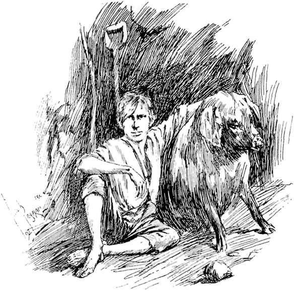 Indeed, at this time his only ally was the pig that lived in one corner of the hovel. The pig was a friendly animal, his front half was a dull white and the other half black, and this gave him a homely look as if he was sitting in his shirt-sleeves. Andy would shrink into the corner, and sit cuddled there with one arm round the pig's neck. Old Mike Lonergan took to drink, and spent every evening at the Shebeen—small blame to him—for how could a man be expected to stay at home with a Changeling sitting in a corner and staring at him?