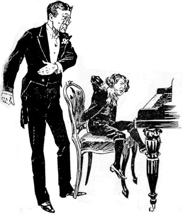 "This," explained my host, "is a fair specimen of the method I employ in preparing a drawing-room sketch. As a rule, my audiences of that class are capital. I always love a well-dressed audience, it is so cheerful. You mayn't perhaps get as much applause as you do from the sixpenny gallery, but then applause often spoils your point. Once, however, I remember singing at a private house in the country to an odd assortment of people. I was informed that the party followed a wedding which had taken place in the morning. If it had followed a funeral it could not have been more gloomy and depressed than it was. I played the piano and the fool for three-quarters of an hour, and anything more dismal than the result it would be impossible to conceive. A temptation seized me suddenly, and I said: 'Ladies and gentlemen,—I am going to reveal to you a secret. Pray don't let it go any further. This is supposed to be a comic entertainment. I don't expect you to laugh at it in the least; but if, during the next sketch, you would only once oblige me with a society smile, it would give me a great deal of encouragement.' The audience for a moment were dumbfounded. They first began to titter, then to laugh, and actually to roar, and for a time I could not proceed with the sketch. They were transformed into a capital and enthusiastic audience, and the hostess told me that both her guests and herself were most grateful to me. I am sometimes amused with the little eccentricities of people who wish to secure my services for their parties. A gentleman once wrote to me to entertain some friends of his, and, added he, 'I trust that your sketches are strictly comme il faut, as I have several young daughters.' I was so immensely tickled by this that, rightly or wrongly, I replied that my entertainments were as they should be, for I was recently married, and hoped myself to have several young daughters. He wrote thanking me for this assurance, and I was to consider myself accordingly engaged. There is a story I tell in my book which will bear repetition: A young gentleman once called upon me. He explained that he was acting as a sort of ambassador for a friend of his, Mrs. ——, of Mayfair, who wished me to dine at her house. I replied that I had not the honour of the lady's acquaintance, and, though appreciating her kind invitation, I did not see how I could very well avail myself of it. He said that Prince Somebody or other and La Comtesse de So-and-so would be dining there, and Mrs. —— would be so pleased if I would join the party, and sing a little song after dinner. 'Oh,' I said, 'if Mrs. —— wishes to engage me professionally, that is another matter, and if I am at liberty, I will come with much pleasure.' 'Well,' said the ambassador, 'I fancy Mrs. —— is under the impression that if she includes you in her dinner party it is an understood thing that you sing afterwards.' 'I am afraid I do not understand that,' I said. 'It would not pay me to do so. I only consume about ten shillings worth of food and wine, and my terms are more than that.' There," said Mr. Grossmith, "could you have believed that anyone would have been so inconceivably mean and caddish?"