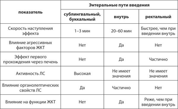 Таблица 3. Сравнительная характеристика энтеральных путей введения