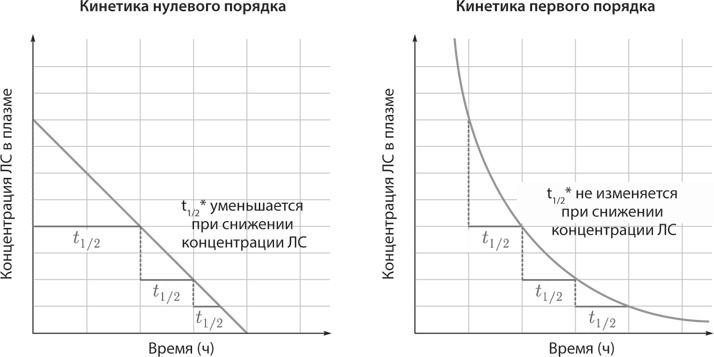 Выделяют два основных типа кинетики метаболизма лекарств. Кинетика нулевого порядка: скорость метаболизма и/или элиминации остается постоянной и не зависит от концентрации препарата в плазме в равновесном состоянии (Cплазма снижается линейно с течением времени).