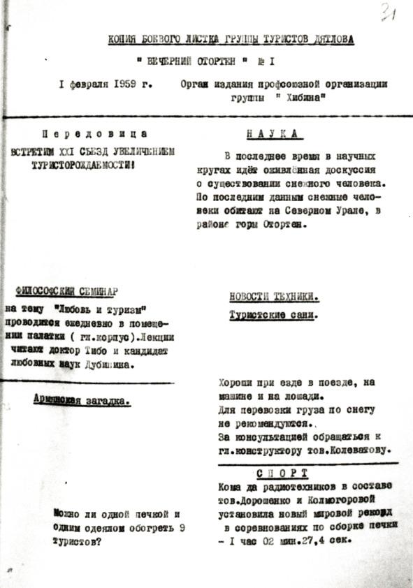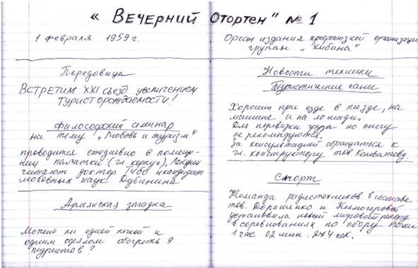 А начну я, пожалуй, с последнего письменного документа, который оставили нам «дятловцы» — с «боевого листка».