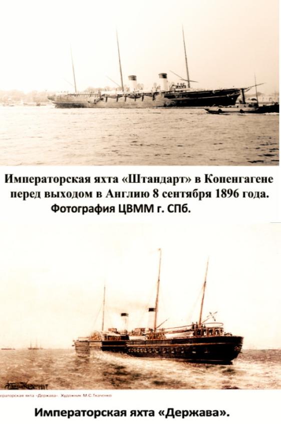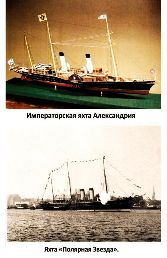 Когда встал вопрос о строительстве яхты, подобной погибшей колесной «Ливадии», …вице-адмирал А. А. Попов…, предложил новую конструкцию яхты близкой к форме эллипса… 25 июня 1880 года в Англии «Ливадию» спустили на воду. Она совершила единственное плавание из Англии в Россию в ходе, которого, получила повреждения и была списана 15 августа 1881 года. Первыми железными императорскими яхтами Балтийского флота стали построенные для наследника престола великого князя Александра Александровича «Славянка», «Царевна» и «Марево». В этот же период строятся также и большие яхты. Так 28 мая 1891 года с Александром III на борту новой яхта «Полярная звезда» вышла в свое дальнее плавание» по маршруту Христианзанд — Фальмут — Виго — Христианзанд — Гельсингфорс. 29 августа 1893 года «Полярная звезда» с Александром III, императрицей Марией Федоровной и цесаревичем Николаем Александровичем пришла в Копенгаген, где простояла до шестого октября. Для пополнения Добровольного флота в 1892 году русское правительство заказало датской судостроительной фирме «Бурмейстер or Вайн» новый крейсер, однако император Александр III передумал и решил построить большую яхту. По его замыслу «яхта должна была отвечать задачам поддержания престижа России и величия императорского дома на международной арене». Окончание сдаточных испытаний яхты совпало с пребыванием в Дании Николая II. Накануне их проведения, Третьего сентября 1896 года, он побывал на «Штандарте» и, подробно осмотрев яхту, дал ей высокую оценку. Особенно ему понравилась внутренняя отделка кают и салонов, выполненная по проекту датского художника Людовига Монберга, которого он наградил серебряными часами. Не закончив ходовые испытания, Восьмого сентября 1896 года «Штандарт», принявший на борт Николая II и императрицу Александру Федоровну, в сопровождении яхты «Полярная звезда» «Штандарт» ушел в Англию.